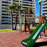 The 80 m^2 Posidona Resort Punta Prima is at a distance of 4.3 km from Campo de Golf Villamartin and boasts spa facilities such as a plunge pool. Situated steps away from Paseo Maritimo de Guardamar, this 2-bedroom apartment offers a patio where guests can relax and enjoy the sea view.